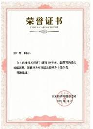 2023年11月,商学院张广胜教授被农业经济问题杂志社评为《农业技术经济》创刊40年“最具影响力十佳作者”。在第三届中国农业经济与产业发展大会上农业经济问题杂志社为张广胜教授颁发了获奖证书和奖杯。