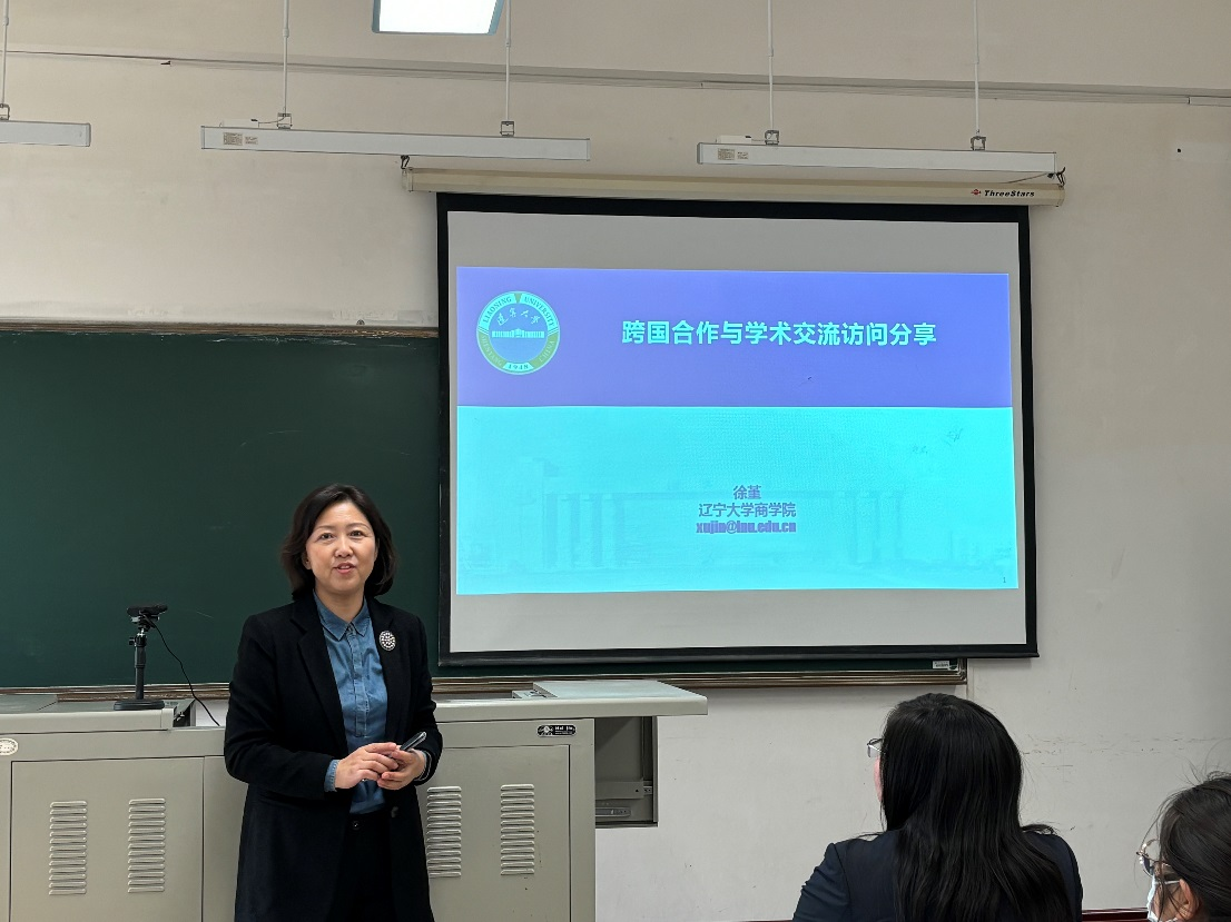 2024年10月23日下午,商学院在博远楼303举办了教师沙龙之国际学术交流与合作经验交流会,会议邀请辽宁大学铁岭城市研究院院长、商学院徐堇副教授为师生分享跨国合作与学术交流经验。商学院人力资源管理系科研主任、美国印第安纳州立大学和新加坡国立大学访问学者李博教授主持会议。