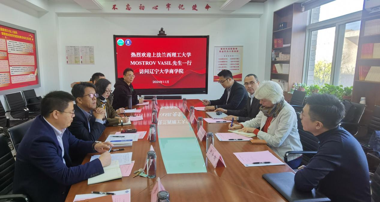 11月5日上午,上法兰西理工大学代表团到访MK体育·(国际)官方网站,双方就人才培养国际合作项目展开洽谈。上法兰西理工大学文学、艺术、人文专业教学负责人瓦兹乐·莫斯托夫先生(MOSTROV VASIL),人文学部、企业管理学院外事负责人维宏妮可·萨基妮蒂女士(VÉRONIQUE SANGUINETTI),合作事务负责人(中国)于辛陶先生,项目协调员(中国)全艺松先生,辽宁大学国际交流处处长谢名一、商学院党委书记李玉华、副院长徐业坤、国际交流办公室主任袁少锋、学院办公室主任李岩参加洽谈。会议由商学院党委书记李玉华主持。